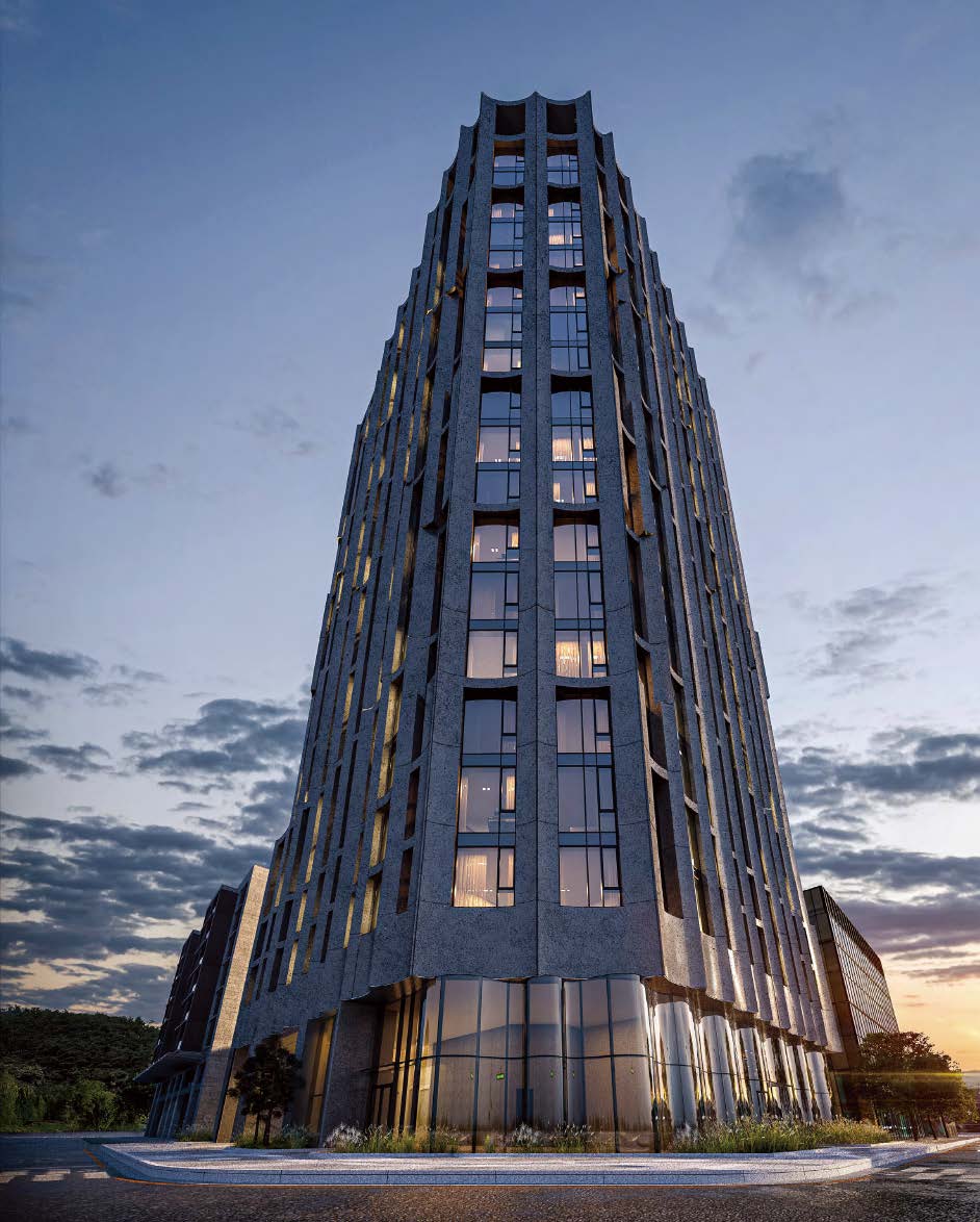 The columnar nodes that have withstood erosion and weathering are landscapes created by time. It's an aesthetic structure that remains strong from the rain and wind, the waves and the heat of the scorching sun, and the winter ice that explodes the rocks. It is for the same reason that we are in awe of this nature that has survived for such a long time. Asti Cabin is a building that symbolizes the natural aesthetic curves created by time, like columnar joints. The unique appearance and the form of floating mass on the curved glass curtain wall mean a differentiated space as a shelter shelter in a city where life competition is fierce. Realized in the architectural language of Astyman, the Asty Cabin is a home that serves as a refuge and haven in the heart of the city.