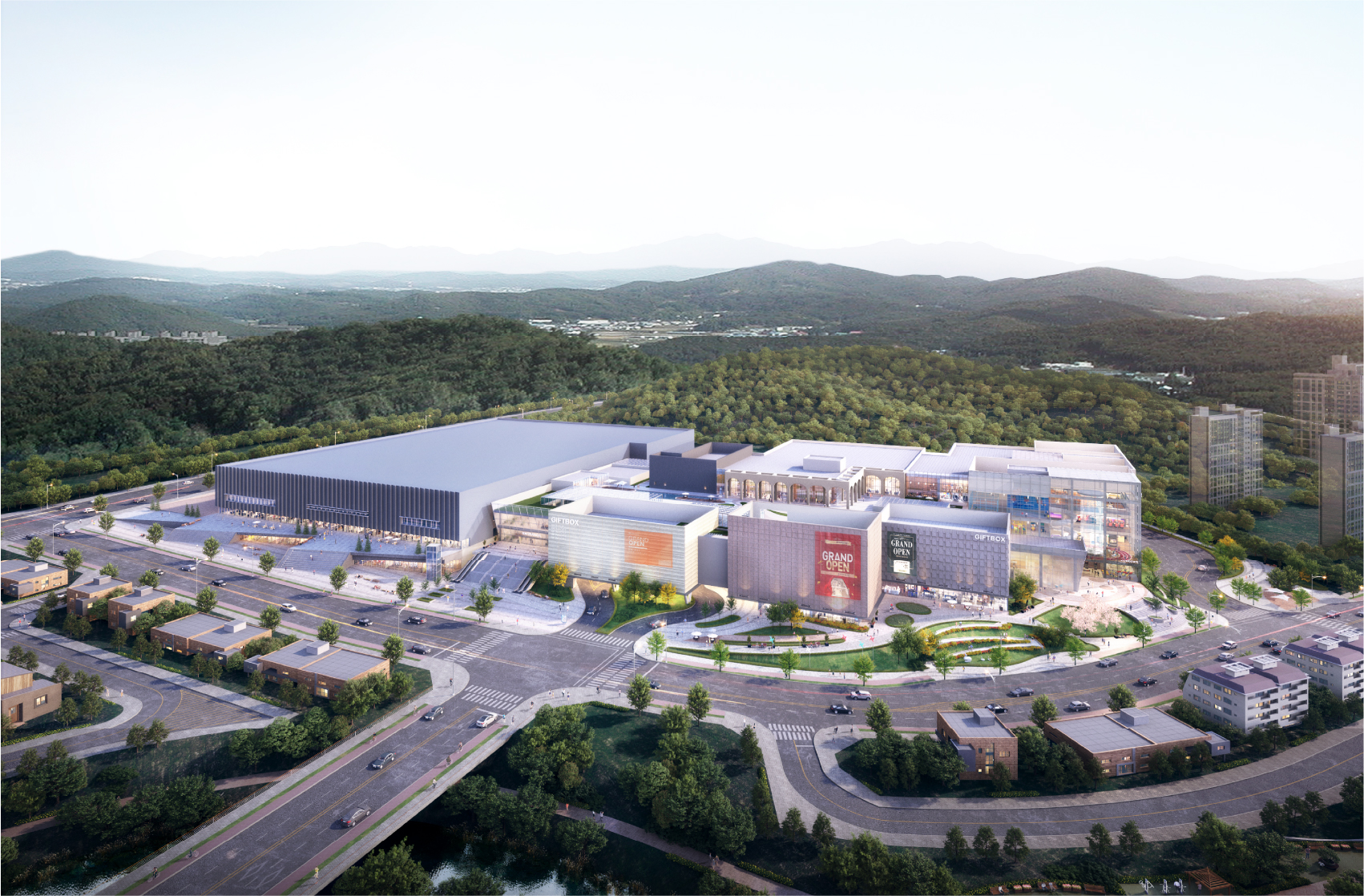 As the first complex shopping mall to enter the Chungcheong region, it is a complex space for shopping and sports entertainment, and was planned as a regionally specialized shopping mall covering the wide-area living area from Gyeonggi, Chungcheong, and Jeonbuk. It was designed by projecting the combination of various contents and programs into the architectural design as it is, and is in progress as a commercial facility with a new structure combining the existing mall-type shopping mall and block-type zoning.