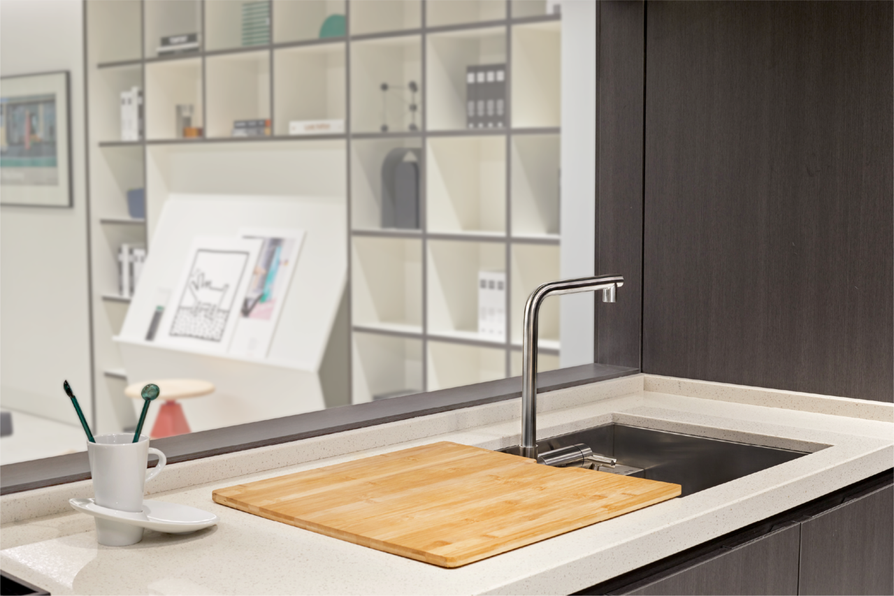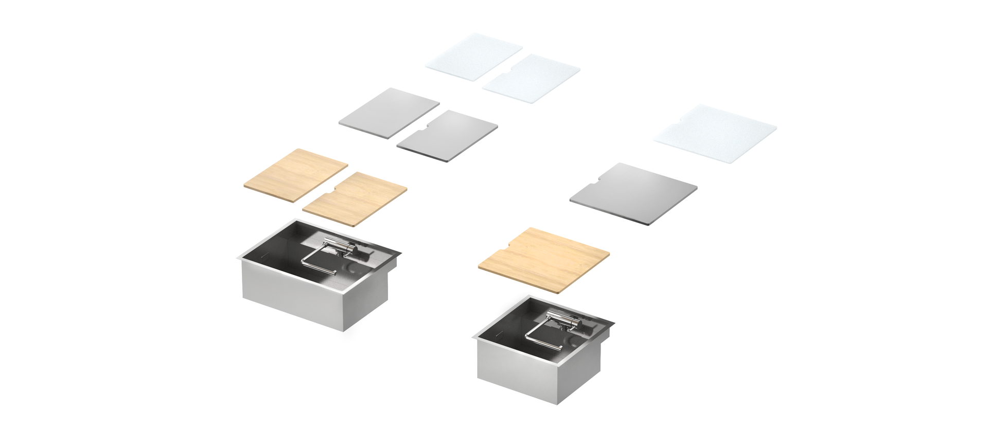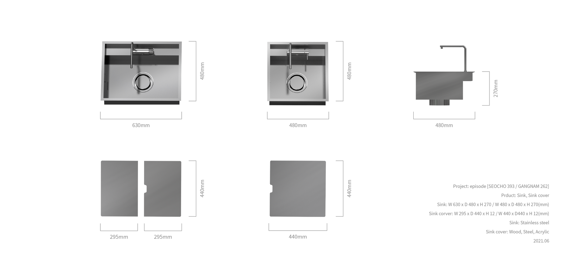 The design of the sink cover is made of three different materials, allowing you to create a slightly different effect depending on the atmosphere. Breaking away from the traditional kitchen framework, it can be configured to suit the lifestyle of new members, and it is possible to produce freely with the parts designed according to the price of the existing low-priced product group and various sink cover designs. can be applied sustainably to a variety of projects.